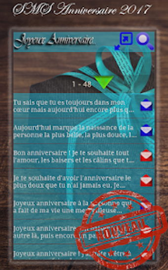 SMS Anniversaire to aplikacja lifestyle'owa opracowana przez Empire of Games dla użytkowników Androida. To świetna aplikacja do wysyłania życzeń urodzinowych dla bliskich. Aplikacja zapewnia użytkownikom szeroki wybór wiadomości SMS, które można wysyłać jako wiadomości tekstowe lub udostępniać na mediach społecznościowych. Dzięki SMS Anniversaire użytkownicy mogą skorzystać z wiadomości SMS zaprojektowanych dla przyjaciół, rodziny i bliskich. Wiadomości są szybkie, krótkie i piękne. Są one oryginalne, klasyczne i pełne humoru. Aplikacja zapewnia również wiadomości dla spóźnionych życzeń i dla kamienic urodzin, takich jak 18, 30 i 40. Użytkownicy mogą również znaleźć wiadomości SMS dla wspomnień, cytatów, przysłów i grzecznych formuł.